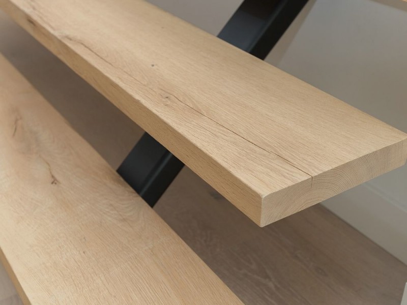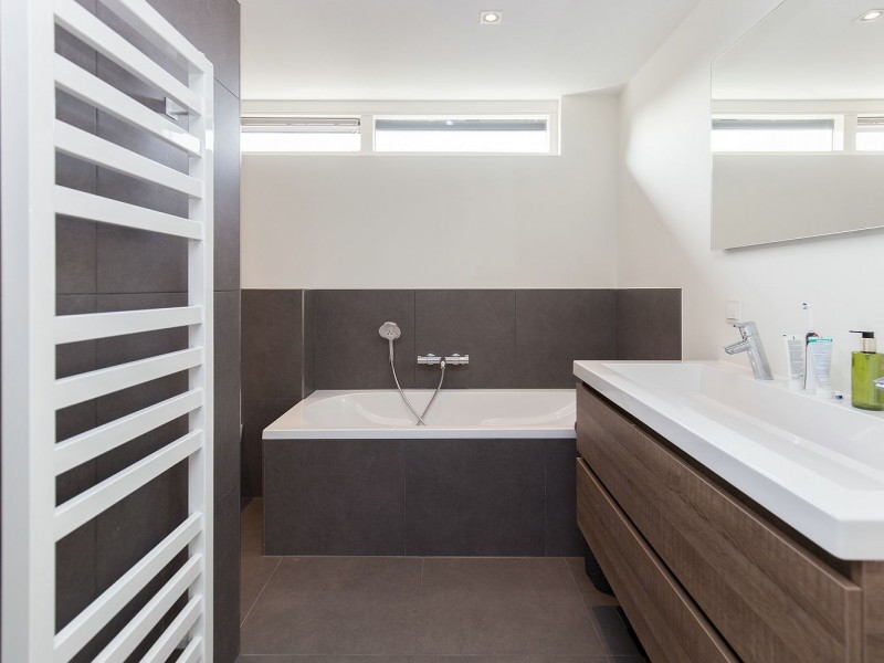 De split-level woning is van binnen geheel verbouwd. Ook is het dak gedeeltelijk opgetild om rondom extra bovenlichten te maken. Hierdoor creëren we extra daglicht in alle ruimtes. In combinatie met de gekozen kleuren en materialen geeft het de woning een frisse en lichte uitstraling.
