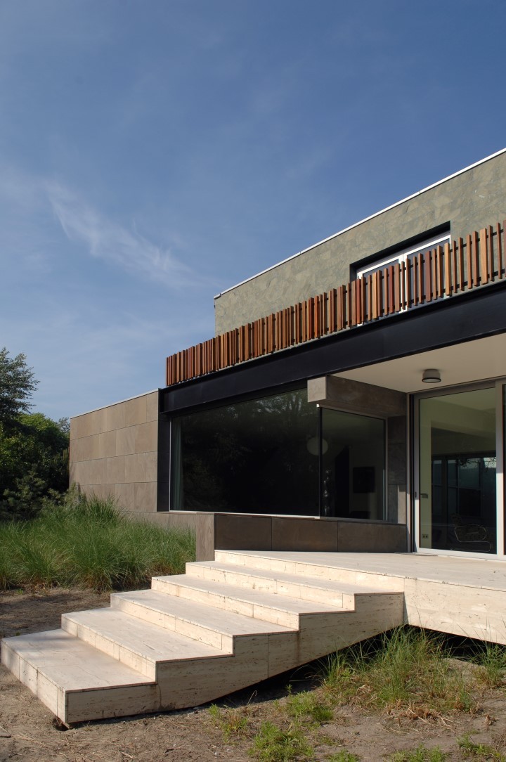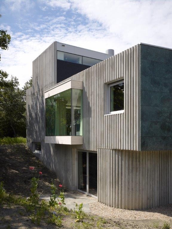 Dit architectonisch hoogstandje is gelegen in de duinen. Het is volledig vervaardigd uit een casco van ter plaatse gestort beton. De gevels zijn opgebouwd uit geprofileerd beton, groen gepolijste marmerplaten met rondom enorme raampartijen.