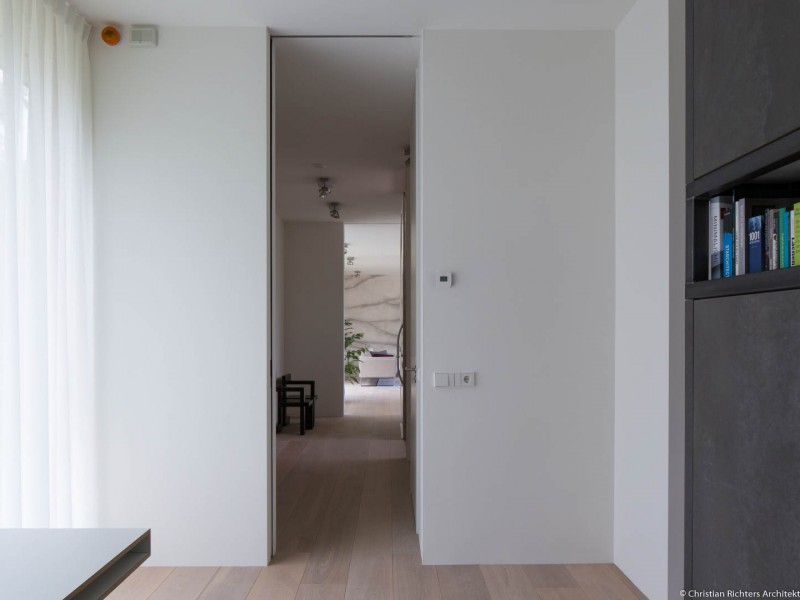 Deze moderne villa is gelegen in de duinen. De grote houten gevelkozijnen met schuifdeuren geeft de villa een open karakter. Het zorgt voor de perfecte verbinding tussen binnen en buiten. De gesloten voorgevel geeft de gewenste privacy.