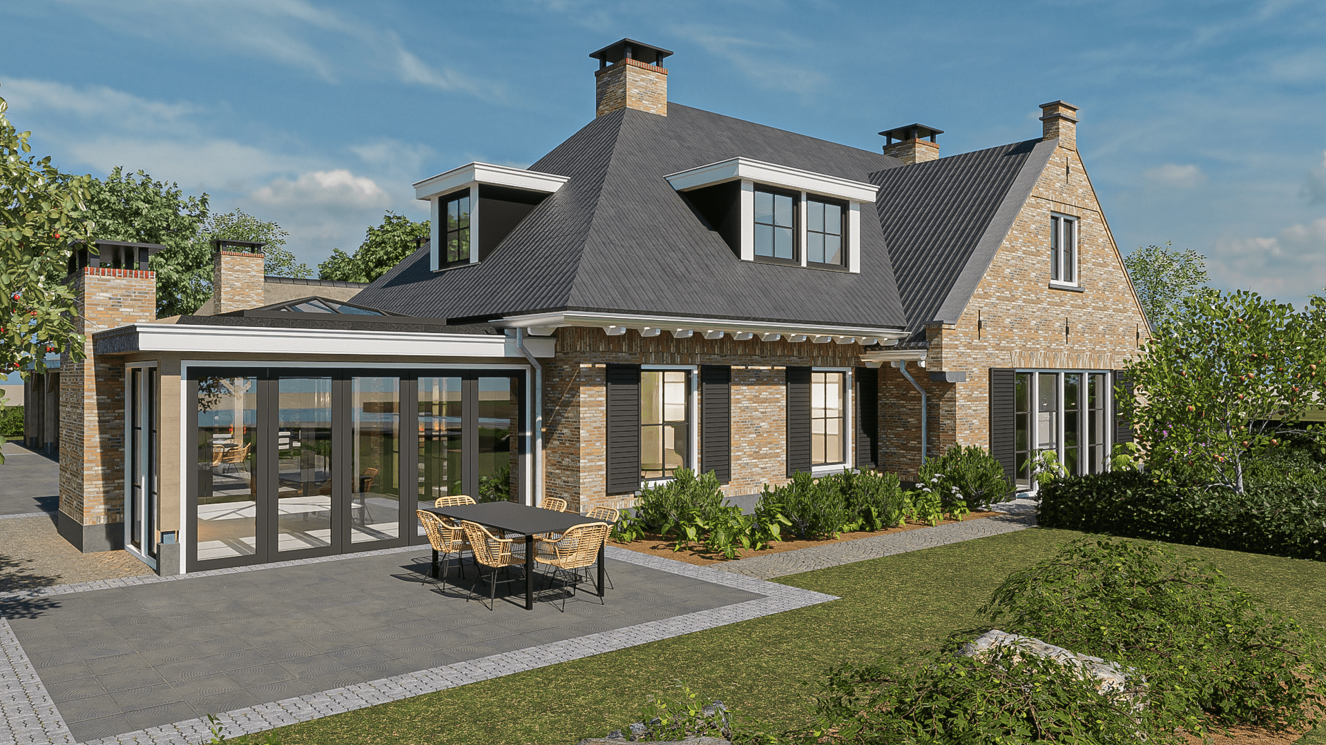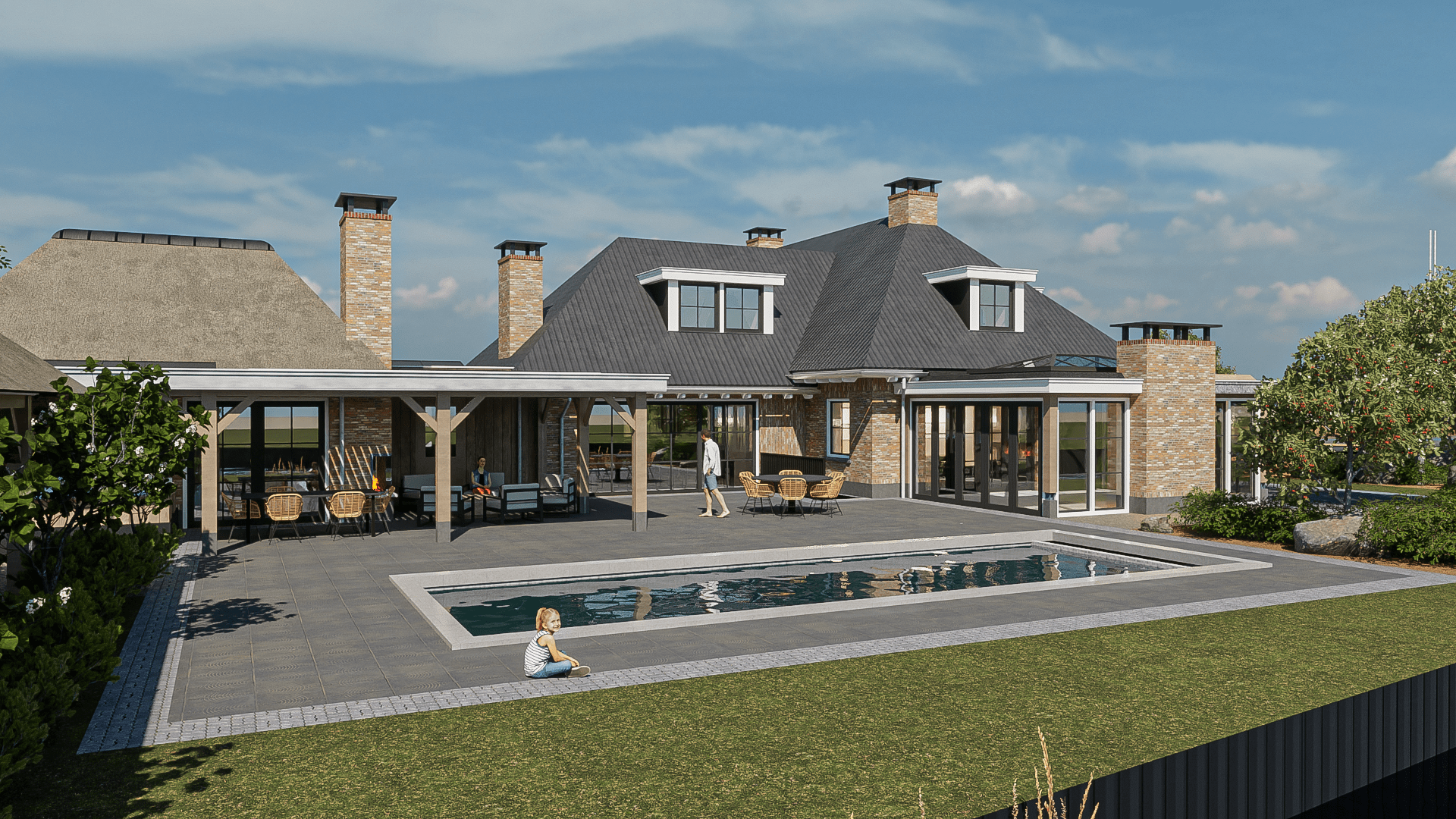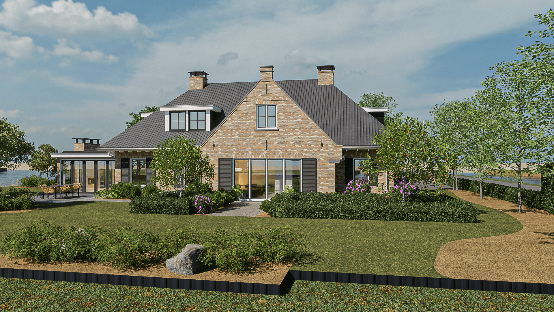Grote moderne villa, gebouwd met authentieke materialen zoals oude bakstenen en dakpannen. Voorzien van een glazen lift met zicht op oude bakstenen muur. De aangebouwde serre heeft volledig te openen gevels en daklicht voor maximaal licht en ruimtegevoel. In de kelder bevindt zich een wasruimte, sportruimte en een parkeergarage voor 5 auto’s, bereikbaar via een autolift. De garagedeur oogt als een klassieke dubbele deur, maar is uitgevoerd als sectionaaldeur. De tuin biedt een royaal zwembad en aan het water ligt een rietgedekt boothuis op massief eiken constructie compleet met bootlift.